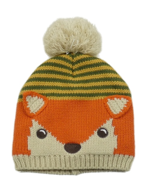 Oranžovo-světlebéžovo-okrovo-khaki pletená čapica s líškou a brmbolcom PUSBLU