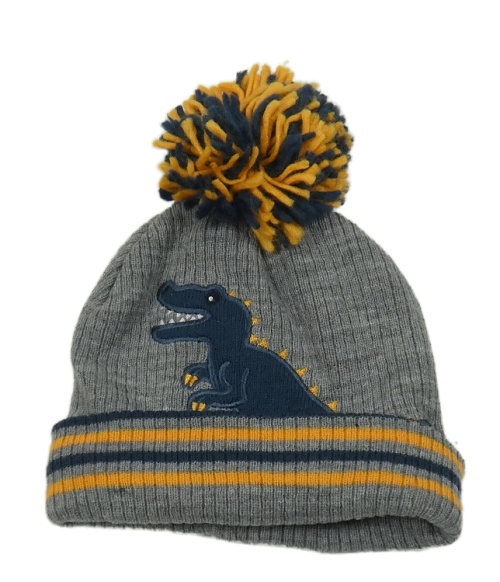 Sivá pletená podšitá čapica s dinosaurom
