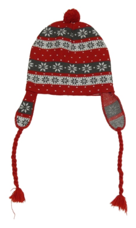 Červeno-sivo-biela čapica s norským vzorom a brmbolcom