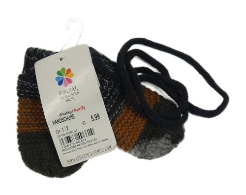 Nové - tmavomodro-medovo-tmavokhaki melírované pletené rukavice so šňůrkou Topomini