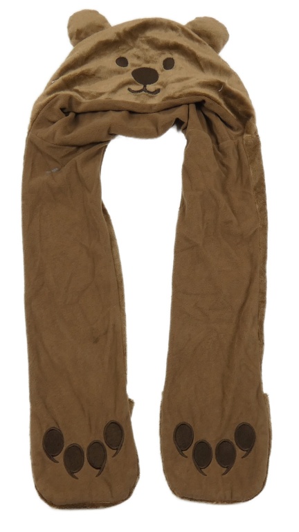 Hnedá plyšová podšitá čapica s šálou - medvěď