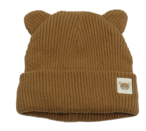 Hnedá rebrovaná čapica s medvedíkom a uškami F&F