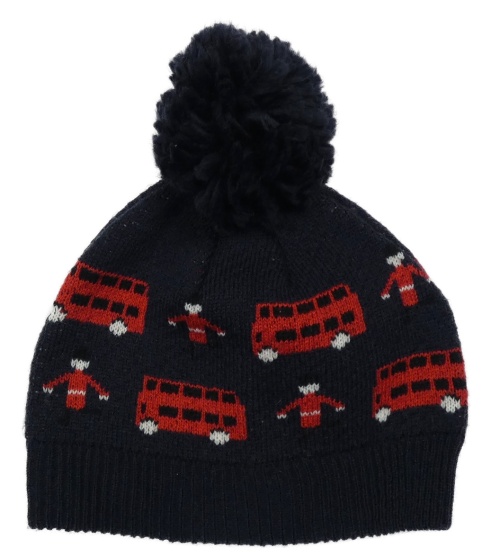 Tmavomodrá pletená čapica s doubledeckery a brmbolcom M&S
