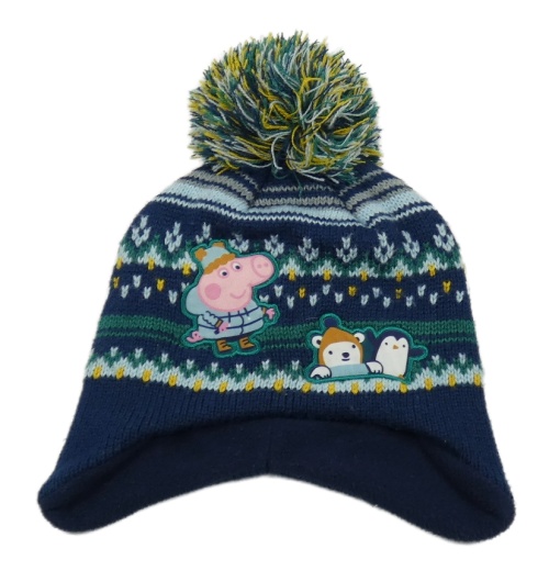 Tmavomdoro-modro-zelená vzorovaná čapica s Peppa pig a brmbolcom George