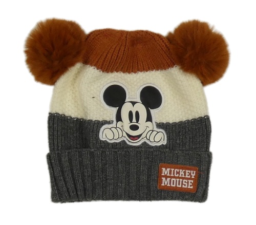 Hnedo-krémovo-tmavosivá pletená čapica s Mickeym a bambulemi Primark