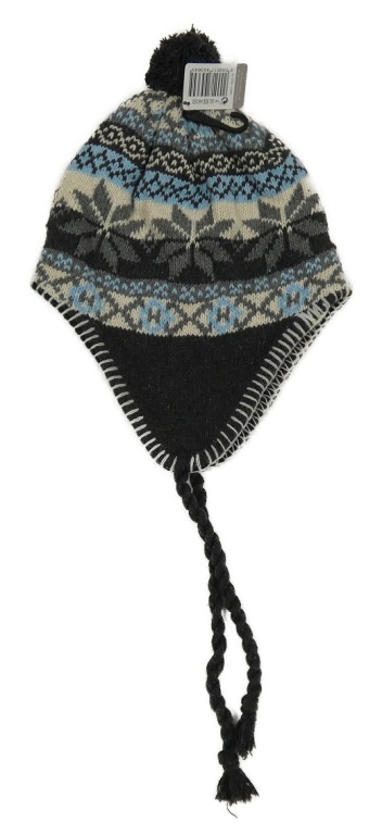 Nové - Sivo-bielo-svetlomodrá čapica s norským vzorom a brmbolcom