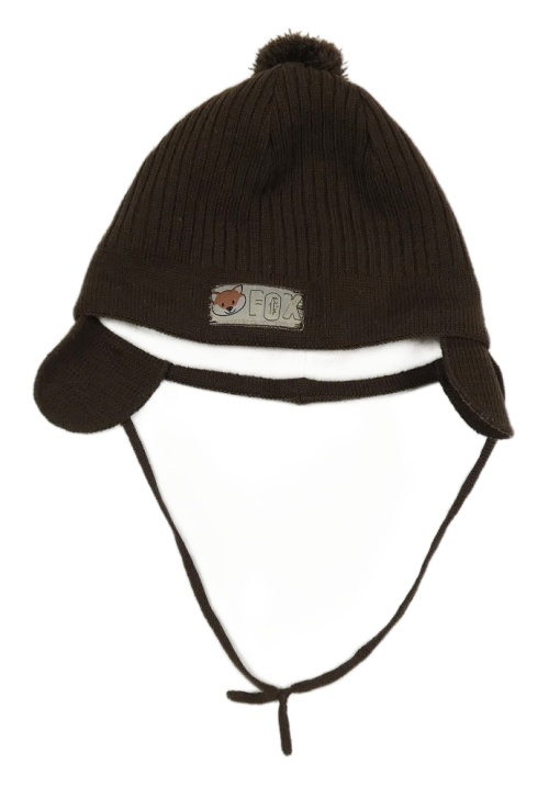 Kávová rebrovaná pletená podšitá čapica s líškou