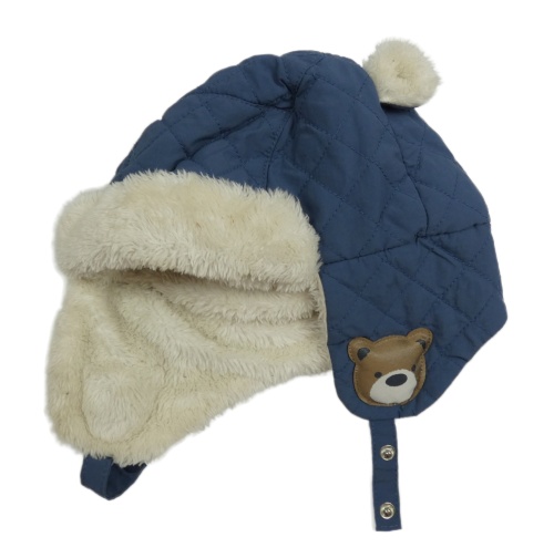 Tmavomodrá šusťáková zateplená beranice s medvěďom