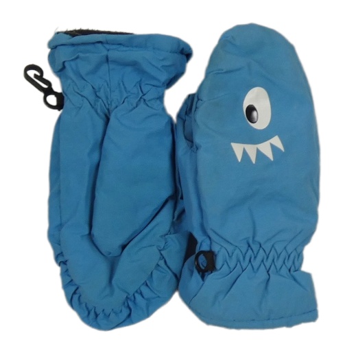 Modré šusťákové zimní palcové rukavice s okem a zuby