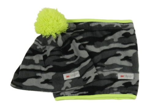 2 set - Sivo-čierna army fleecová čapica s bambulí + šedo-černý army fleecový nákrčník