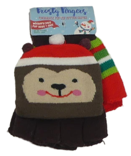 Nové - Hnědo-barevné zaklápěcí prstové rukavice s ježkom a pruhmi