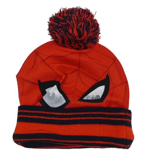 Červeno-tmavomodrá čapica s pruhmi a bambulí - Spider-man MARVEL