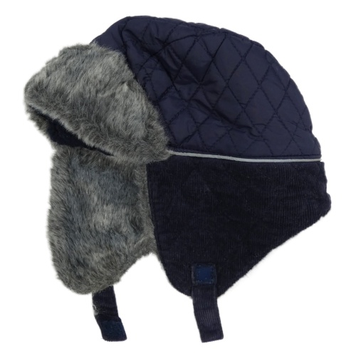 Tmavomodrá šusťákovo/manšestrová beranice s kožešinou Mothercare