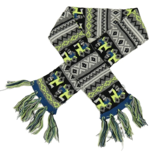 Sivo-čierno-neónová vzorovaná šál s strapcemi