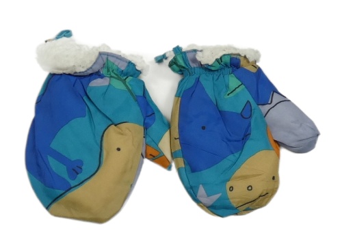 Modrozelené šusťákové palcové rukavice s dinosaurami