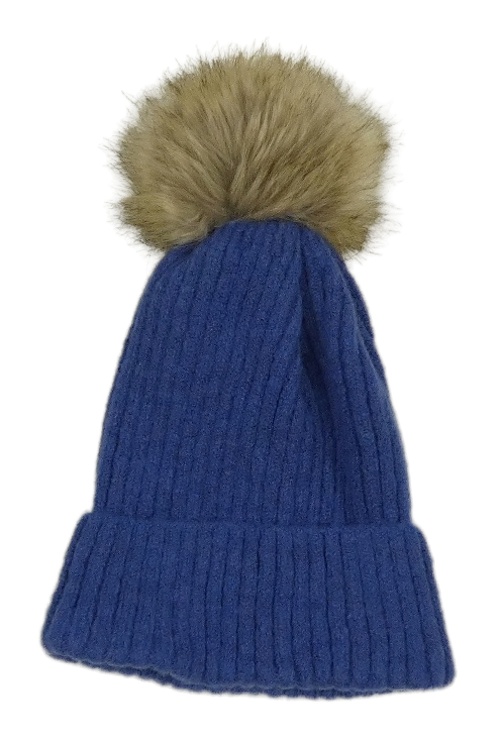 Modrá pletená rebrovaná čapica s brmbolcom