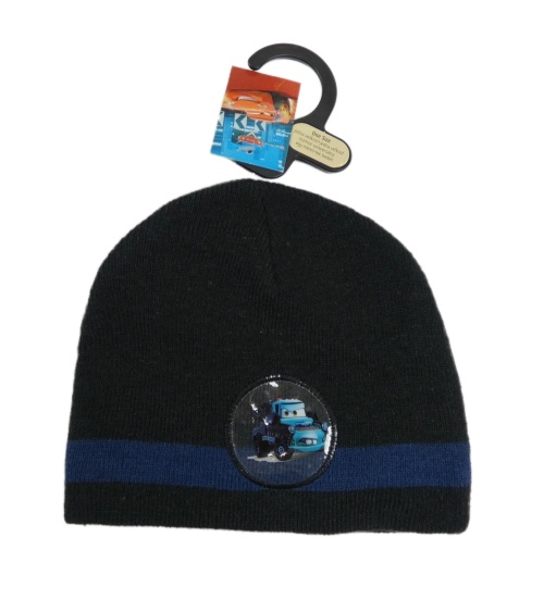 Nové - čierna pletená čapica s Cars a pruhom Disney