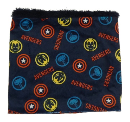 Tmavomodrý plyšový zateplený nákrčník so znaky Avengers MARVEL