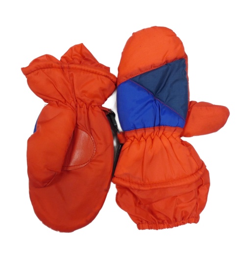 Červeno-tmavomodré šusťákové zateplené palcové rukavice