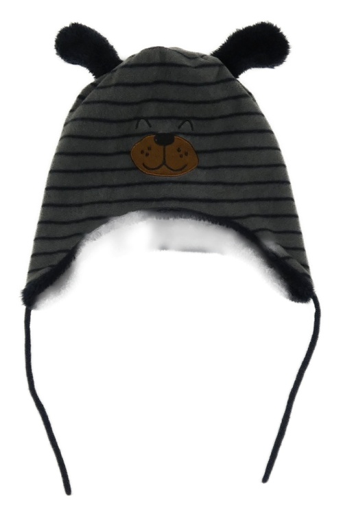 Tmavošedo-modrá pruhovaná fleecová zateplená čapica s ňufáčikom Topomini