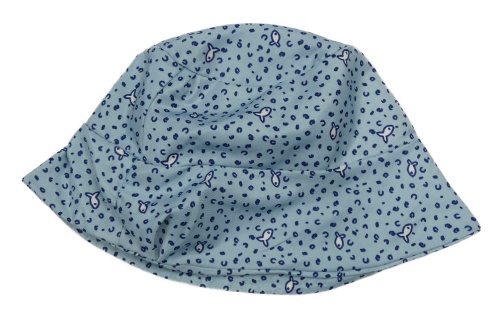 Světlemodro-tmavomodrý vzorovaný klobúk s rybkami