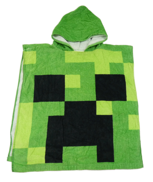 Zeleno-čierne froté osuškové pončo s kapucí - Minecraft