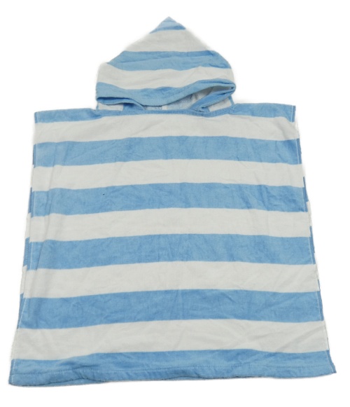 Modro-biele froté osuškové pončo s kapucňou Beach club