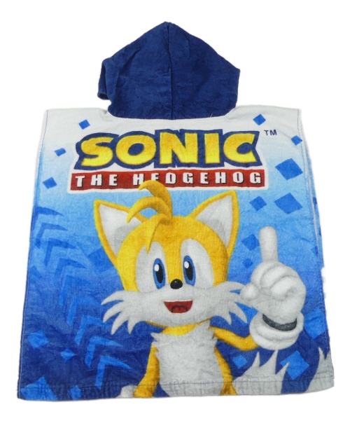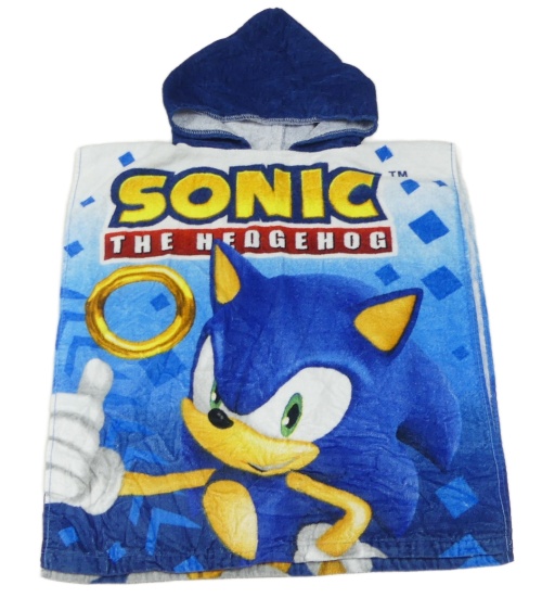 Modro-biele froté osuškové pončo so Sonicem a kapucňou