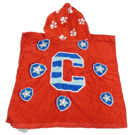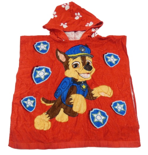 Červené froté osuškové ponočo s Tlapkovou patrolu a kapucňou