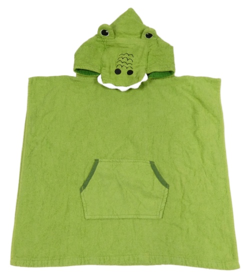 Zelené froté osuškové pončo s kapucí - krokodíl