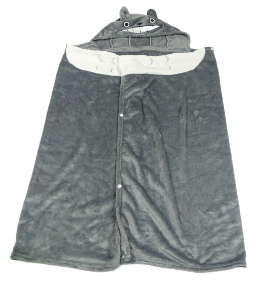 Sivo-biela chlpatá zavinoavací deka s ňufáčikom a kapucňou
