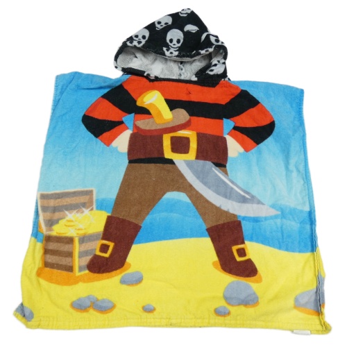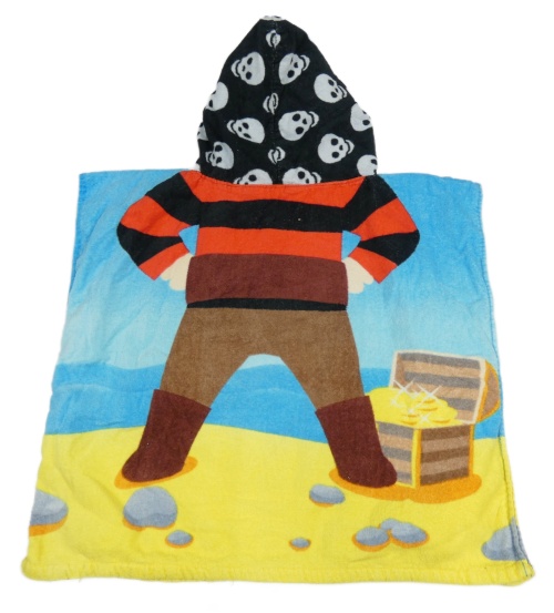 Modro-farebné froté osuskové pončo s kapucí - pirát