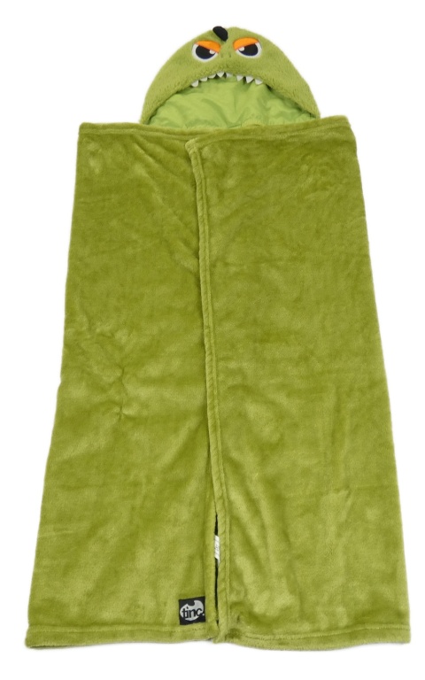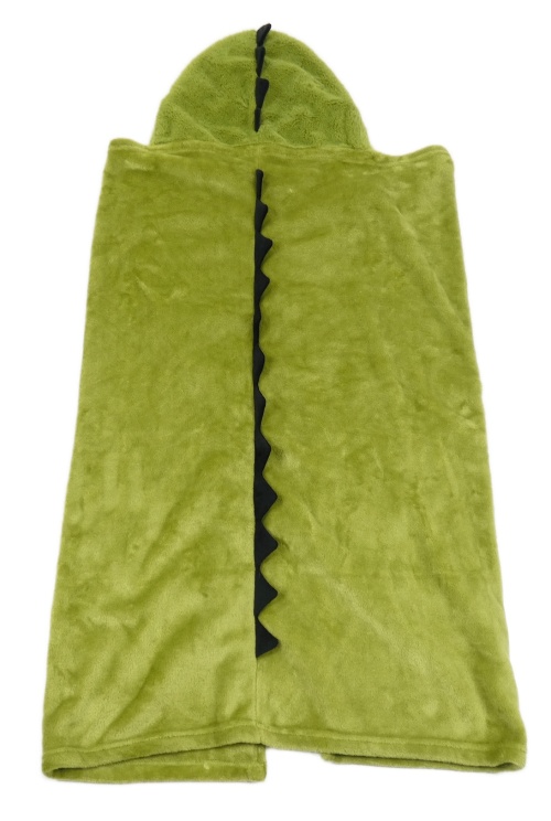 Zelenoolivová plyšová zavinovací deka s kapucí - príšerka