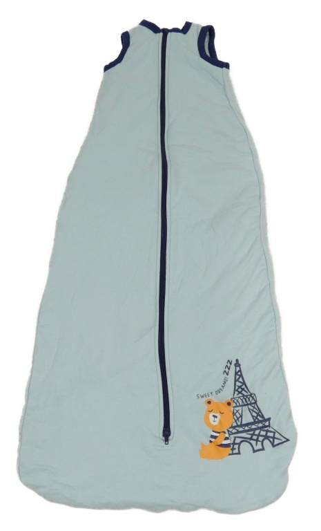 Světlemodro-tmavomodrý zateplený spací pytel s medvedíkom a Eiffelovou věží lupilu