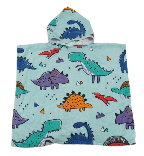 Svetlomodré froté osuškové pončo s dinosaurami a kapucňou George