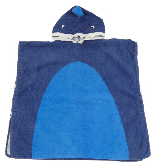 Tmavomodré froté osuškové pončo s kapucí - žralok