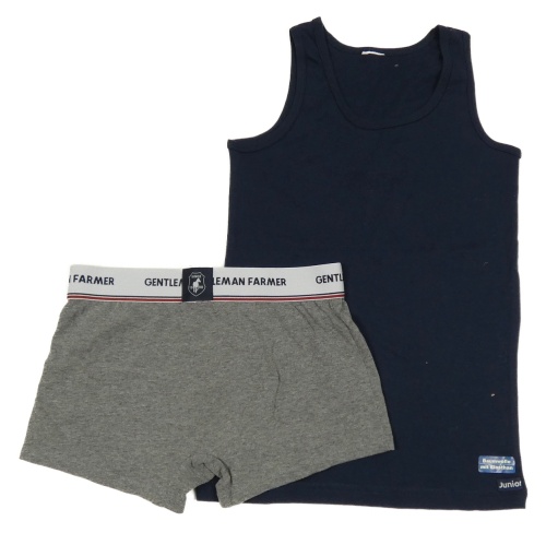 Nové - 2Set - Tmavomodrý nátělník + sivo-biele melírované boxerky s logy GENTLEMAN FARMER