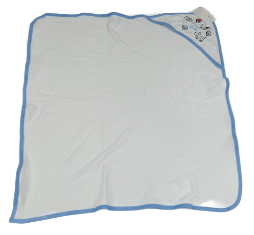 Nové - bielo-modrá zavinovací deka s kapucňou so štěňátky a stromčekmi KRIS X KIDS