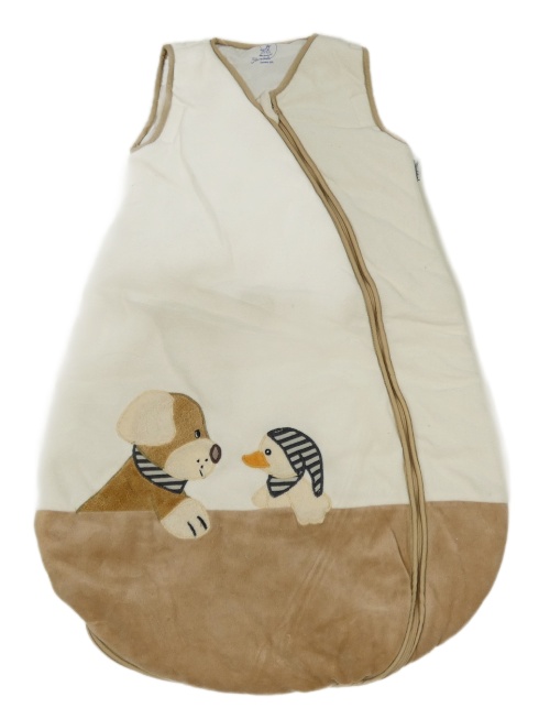 Smetanovo-hnědý sametový zateplený spací pytel so psem