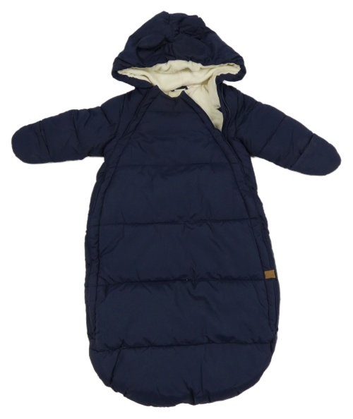 Tmavomodrý prošívaný šusťákový zimní fusak s kapucňou s uškami H&M