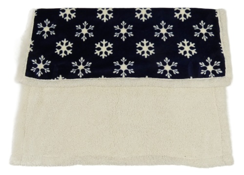 Tmavomodro-biela plyšovo/huňatá deka s vločkami