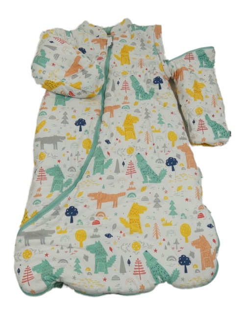 Bílo-barevný zateplený spací pytel s obrázkami a odepínacími rukávy