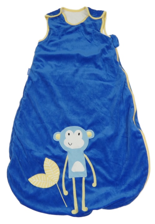 Tmavomodrý sametový zateplený spací pytel s opicou