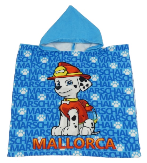 Modré vzorované osuškové pončo s Tlapkovou patrolou a kapucňou