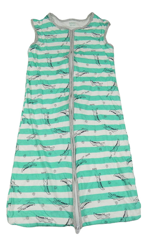 Zeleno-bílý pruhovaný podšitý spací pytel s krokodílmi