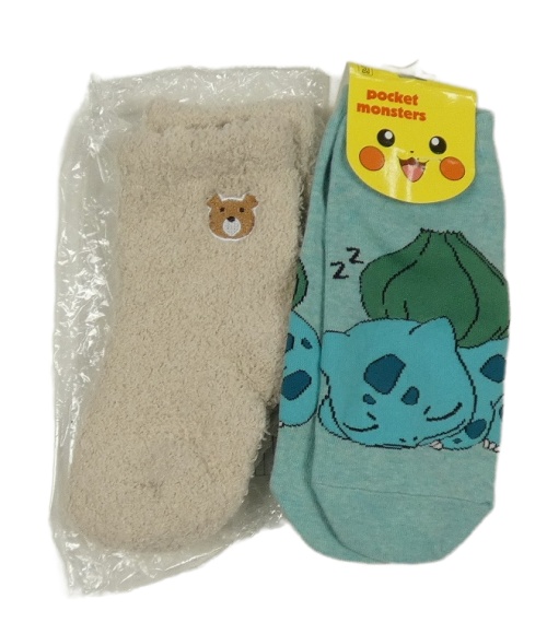 Nové - 2x ponožky - béžové chlupaté s medvídkem + modrozelené - Pokémon