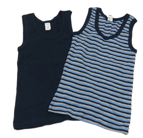 2x nátělník - šedo-modrý pruhovaný + tmavomodrý C&A