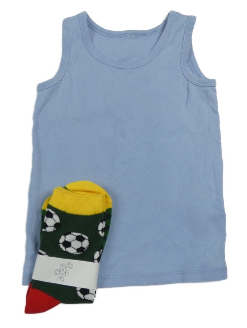 2 set - modrý nátělník + zeleno-žlté ponožky s loptami