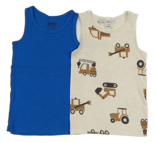 2x nátělník - modrý + béžový s traktormi