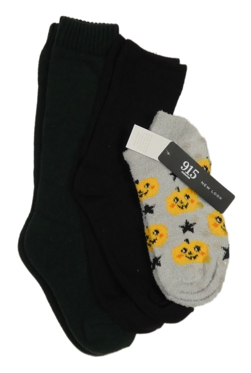 Nové - 3x ponožky - tmavozelené + černé + šedé chlupaté členkové s dýněmi